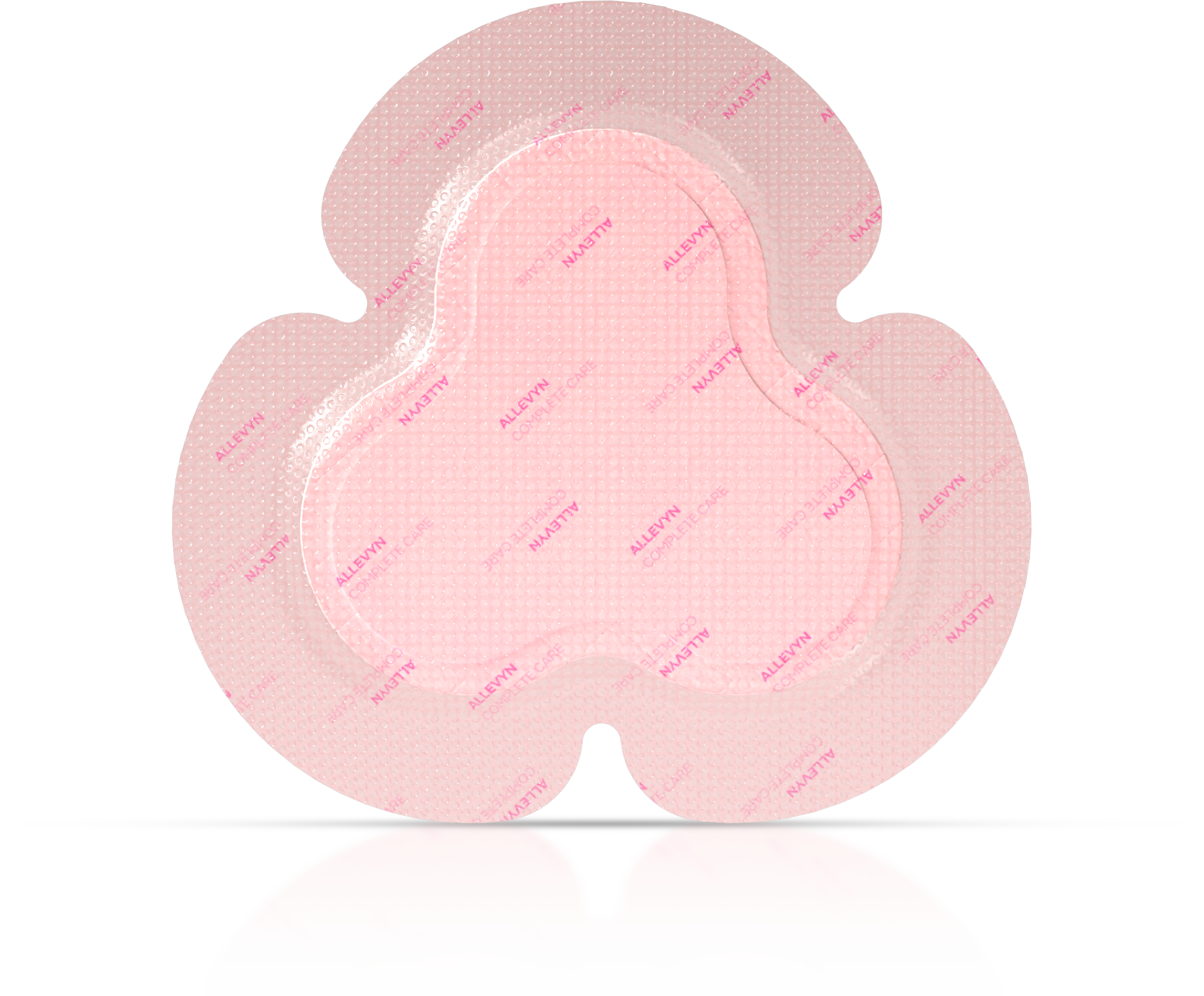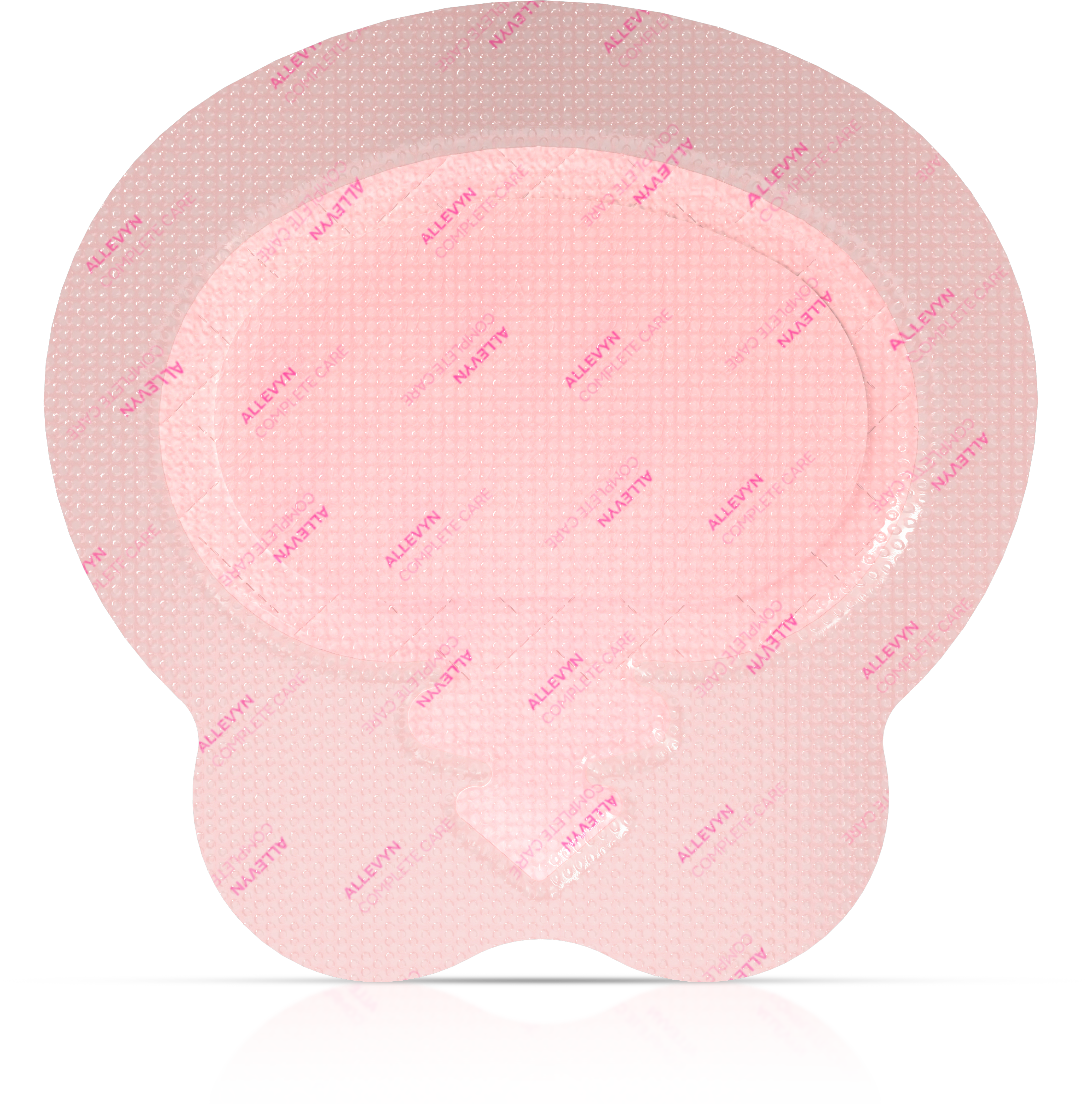 ALLEVYN 5-layer dressings are silicone adhesive foam dressings that have been shown to help reduce the incidence of pressure injuries and cost of care7,12 when added to a standard preventive care program. ALLEVYN COMPLETE CARE dressings are available in multiple shapes and sizes, including ones designed specifically to address the two sites at highest risk for developing pressure injuries – the sacrum and the heel areas.13 ALLEVYN COMPLETE CARE dressings: